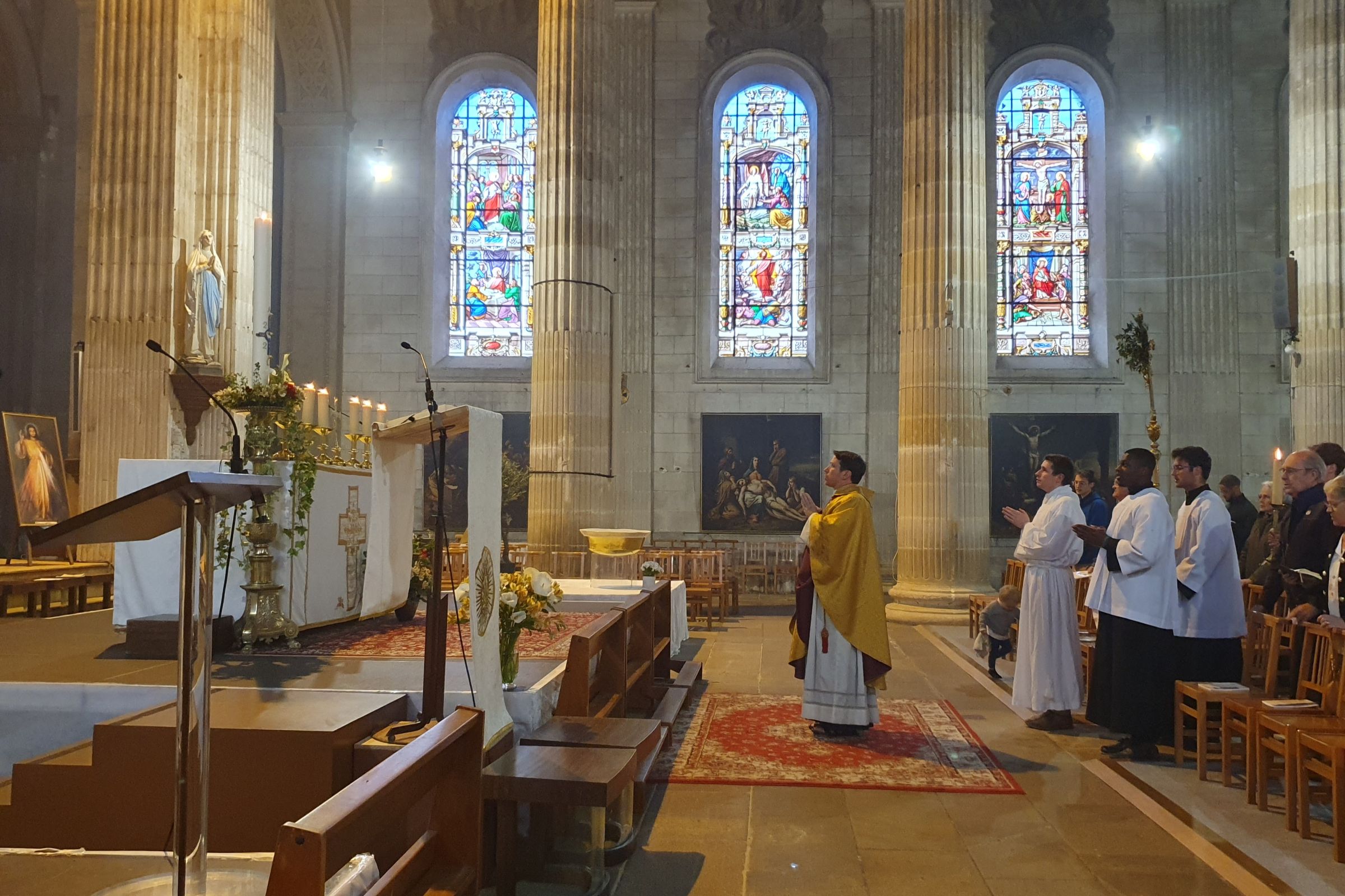 Ce jeudi 9 mai, au lendemain de l’election de notre nouveau pape Léon XIV, avait lieu une messe solennelle avec des chants et prières adaptées à l’occasion à 19h en l’église St Louis. Textes de la messe du vendredi de la 3ème Semaine du Temps Pascal sur AELF