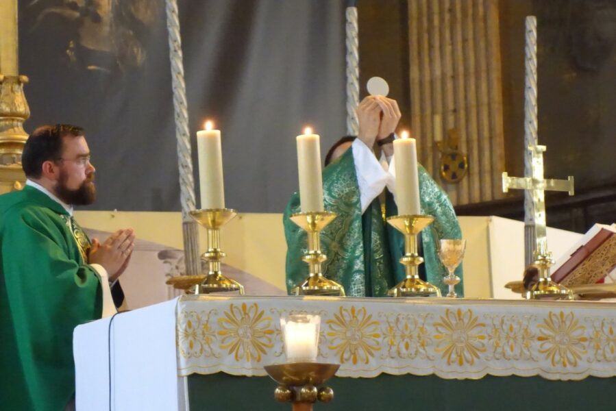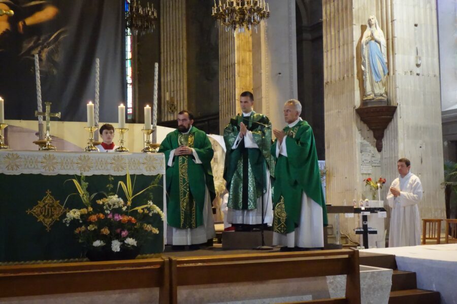 Ce dimanche 6 juillet était la 1ère messe dominicale de l’abbé Gonzague Delahaye, ordonné le dimanche 29 juin, et aussi l’occasion de fêter le départ du Père Jean-Marie Parrat comme prêtre auxiliaire aux Sables, tout en restant au service des vocations comme adjoint pour tuiler l’abbé Gonzague qui en devient le responsable. A cette occasion homélie du Père Jean-Marie.