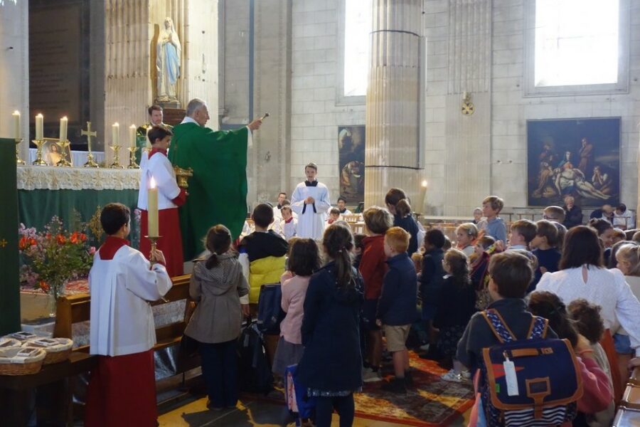 Bénédiction des cartables à St Florent et à St Louis (et aussi aux autres messes).