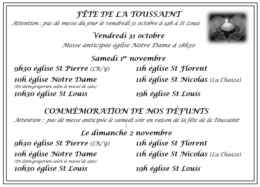 HORAIRES DES MESSES 1er et 2 novembre