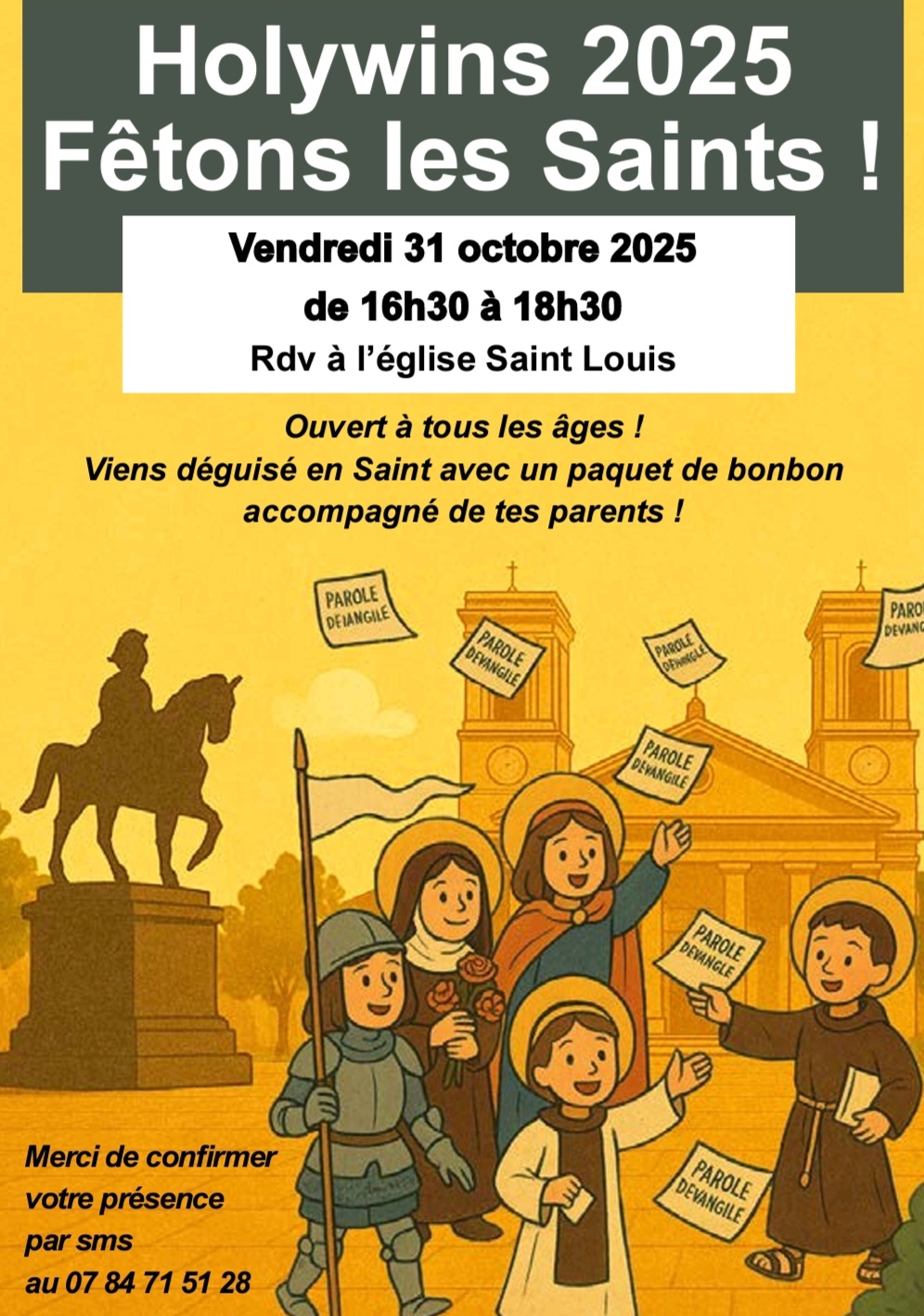 Au programme : Horaires des messes > 29 oct. Journée du pardon / 31oct.Holywins pour les familles > la bâche de Toussaint à St Louis / Présence chrétienne dans les cimetières