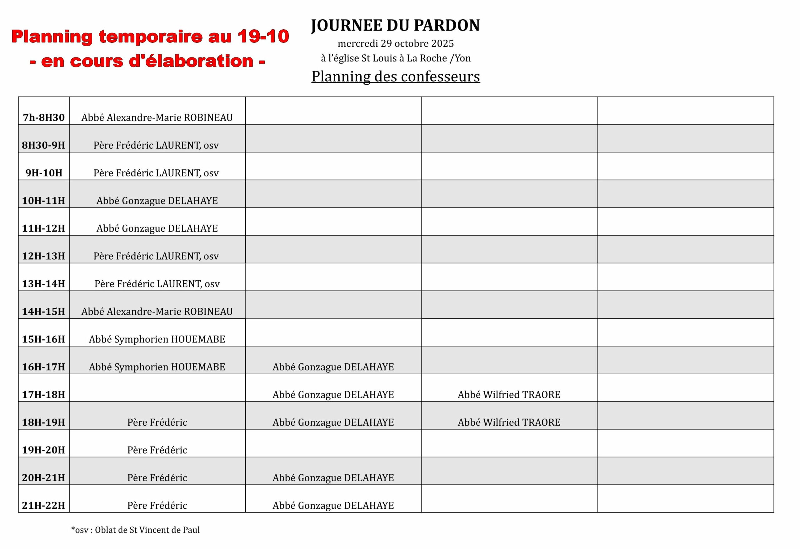 Journée du pardon : mercredi 29 octobre de 7h à 22h